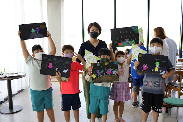아이들이 이렇게 <무술 올림픽>에서 가장 좋아하는 장면을 캔버스에 그렸는데,